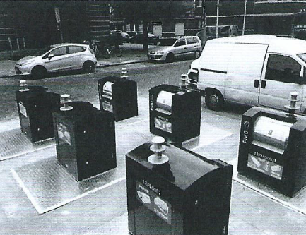 Er bevinden zich op de hoek van de Varkenmarkt en de Prinsegracht glascontainers en ook op de hoek van de Vleerstraat en de Korte Vleerstraat.