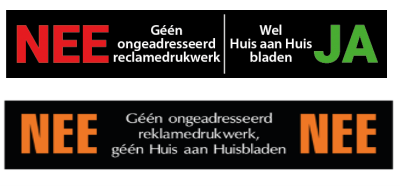 Met een NEE-NEE-sticker of een NEE-JA-sticker op jouw brievenbus ontvangt je geen ongeadresseerde reclame en folders meer.